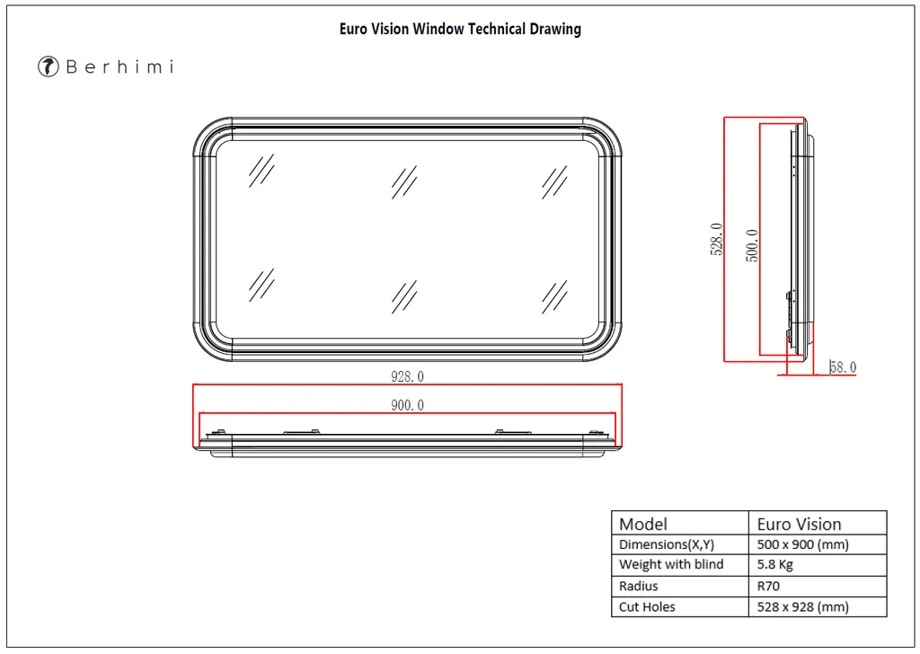 EUROVISION 500×900 Вікно (Біла рама внутрі)